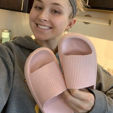 ▪ Conseil Pro pour l'Assouplissement : Si vos claquettes semblent un peu fermes à la réception, c'est normal ! Le matériau EVA de compression peut être légèrement rigide au début. Pour accélérer l'assouplissement et révéler leur douceur unique, suivez ces étapes simples inspirées des Cloud Slides: